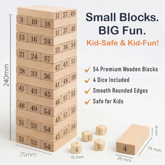 Crafted from child-safe wood with a durable finish, this stacking tower game is perfect for family game nights, classroom activities, and screen-free indoor play. Ideal for children aged 5+ years, it makes a thoughtful birthday or return gift for growing minds.